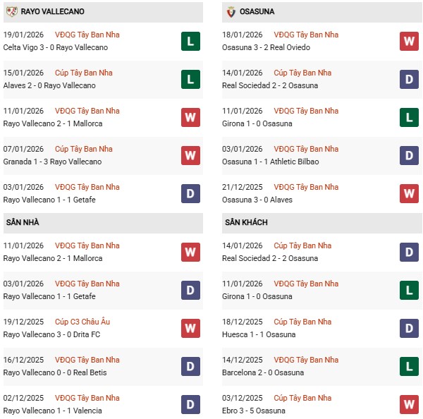 Thống kê phong độ Rayo Vallecano vs Osasuna: