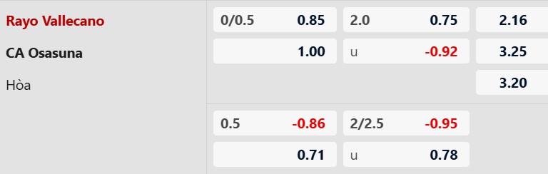 Nhận định kèo châu á Rayo Vallecano vs Osasuna: