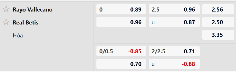 Nhận định kèo châu á Rayo Vallecano vs Real Betis: