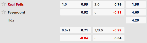 Nhận định kèo châu á Real Betis vs Feyenoord: