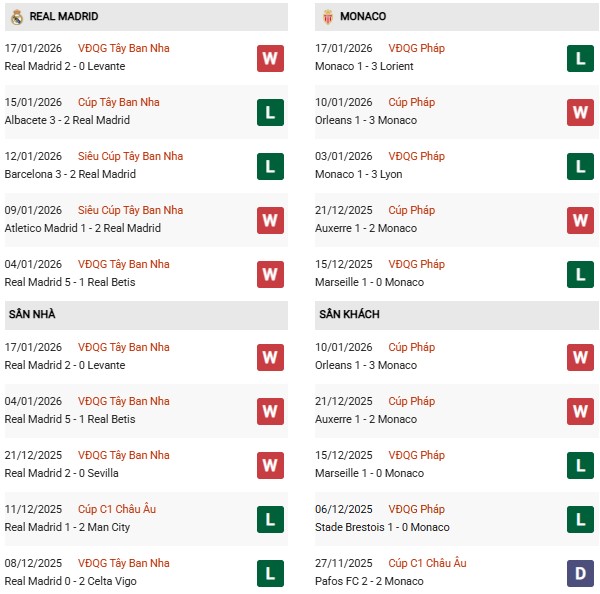 Phong độ đối lập: Real Madrid vừa có chiến thắng khích lệ 2-0 trước Levante. Trong khi đó, Monaco đang sa sút khi thua 4 trên 6 trận gần nhất và vừa thất bại 1-3 trước Lorient tại Ligue 1.