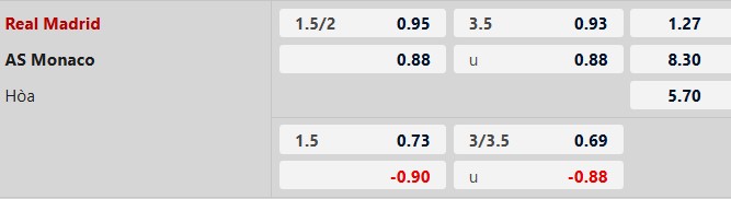 Nhận định kèo châu á Real Madrid vs AS Monaco: