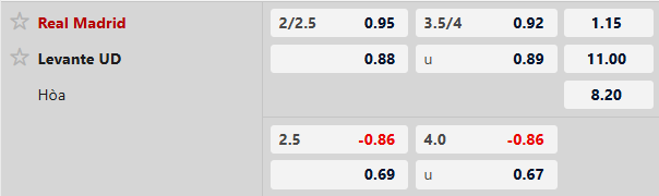Nhận định kèo tài xỉu Real Madrid vs Levante:
