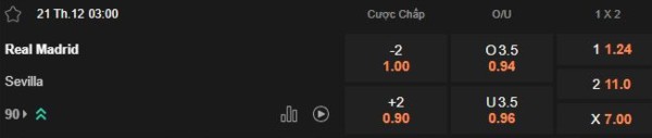 Hàng công của Real Madrid đang duy trì hiệu suất ghi bàn ở mức khá cao. Sau 17 vòng đấu, đội chủ nhà ghi được 34 bàn thắng và để thủng lưới 16 bàn. Ở chiều ngược lại, Sevilla sở hữu hàng công khá năng động với 24 bàn thắng sau 16 vòng đấu. Hàng phòng ngự của đội khách lại không quá chắc chắn khi đã đã để lọt lưới tới 24 bàn. Lựa chọn Tài cả trận vì thế được đánh giá là phương án đầu tư hợp lý.