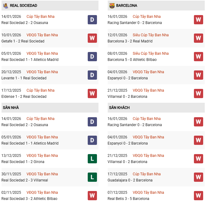 Thống kê phong độ Real Sociedad vs Barcelona: