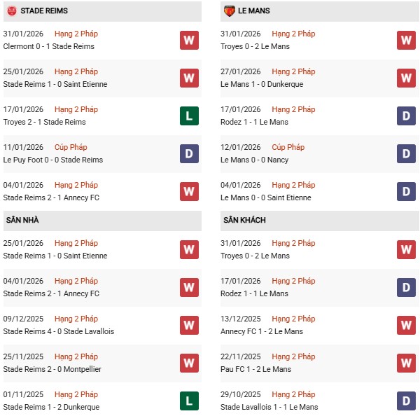 Thống kê phong độ Reims vs Le Mans: