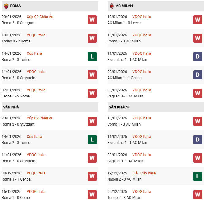 Nhận định Roma vs Milan, 2h45 ngày 26/1, VĐQG Italia. Đội chủ nhà đang có phong độ tốt nên mọi thứ sẽ không hề dễ dàng, nhiều khả năng Milan sẽ không thể có điểm ra về.