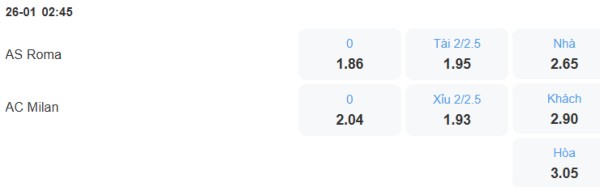 Nhận định kèo Roma vs Milan, 2h45 ngày 26/1 hôm nay