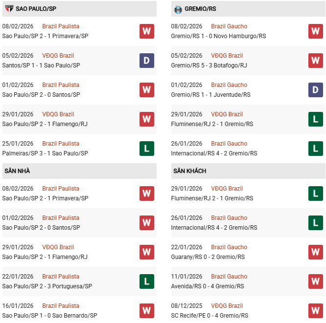 Sao Paulo tiếp đón Grêmio trong bối cảnh giải VĐQG Brazil mới đi qua những vòng đấu đầu tiên nhưng đã sớm cho thấy sự phân hóa nhất định về phong độ. Sao Paulo khởi đầu khá ổn định và đang nằm trong nhóm trên của bảng xếp hạng, trong khi Grêmio chưa tạo được nhiều dấu ấn và vẫn loay hoay tìm sự cân bằng trong lối chơi.