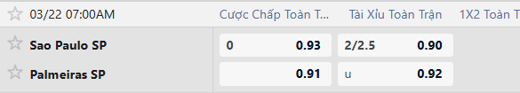 Nhận định kèo Sao Paulo vs Palmeiras, 07h00 ngày 22/03, vòng 8 VĐQG Brazil. Yếu tố tâm lý từ chuỗi 5 trận thua liên tiếp có thể sẽ khiến đôi chân của các cầu thủ Sao Paulo trở nên nặng nề hơn. Palmeiras nhiều khả năng sẽ tiếp tục duy trì chuỗi bất bại trước kình địch cùng thành phố.