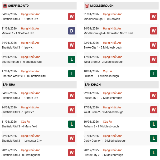 - 10 lần gần nhất gặp nhau, Sheffield Utd thắng 4 thua 5 và hòa 1 trước Middlesbrough.