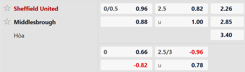Nhận định kèo châu á Sheffield Utd vs Middlesbrough: