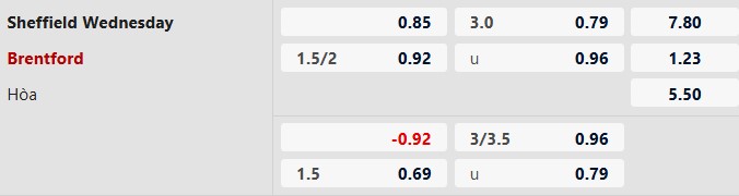 Nhận định kèo tài xỉu Sheffield Wed vs Brentford: