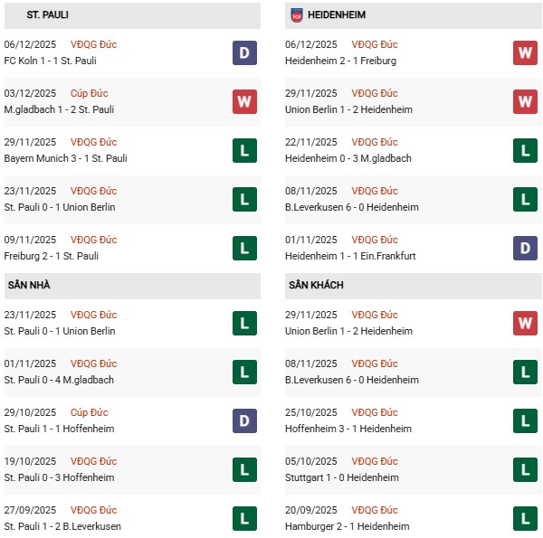Heidenheim lại đang có dấu hiệu khởi sắc với 2 chiến thắng liên tiếp trước Freiburg và Lecce. Hàng công của họ với Mainka và Schimmer đã ghi bàn quan trọng, nhưng hàng thủ vẫn để thủng lưới đều đặn (13 bàn trong 6 trận gần nhất). Đáng chú ý, Heidenheim chưa thua St Pauli trong 2 lần gần nhất làm khách, tạo thêm sự tự tin trước chuyến đi này.