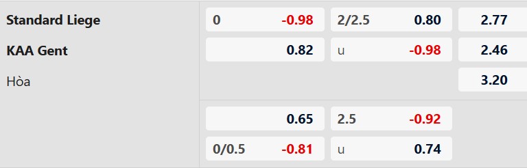 Hàng công của Standard Liege đang chơi rất tệ khi không có trận nào ghi được nhiều hơn 1 bàn nhưng hàng thủ của họ cũng không để lọt lưới nhiều. Trong khi đó Gent cũng không chơi ấn tượng ở mặt trận tấn công nên trận đối đầu giữa 2 đội được dự đoán có ít bàn thắng được ghi.