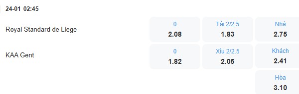 Hàng công của Standard Liege đang chơi rất tệ khi không có trận nào ghi được nhiều hơn 1 bàn nhưng hàng thủ của họ cũng không để lọt lưới nhiều. Trong khi đó Gent cũng không chơi ấn tượng ở mặt trận tấn công nên trận đối đầu giữa 2 đội được dự đoán có ít bàn thắng. Nên chọn kèo Xỉu thì cơ hội thắng cuộc cao hơn.