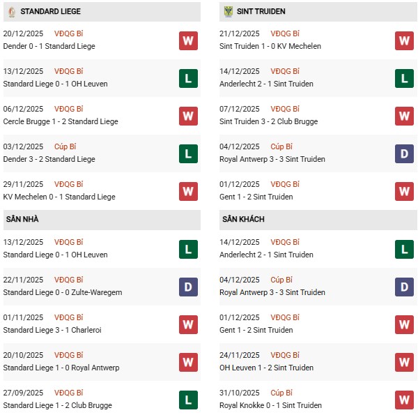 Thống kê đối đầu Standard Liege vs Sint Truidense:
