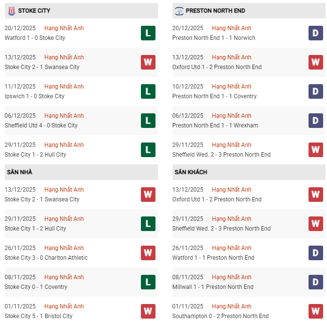Thống kê phong độ Stoke vs Preston: