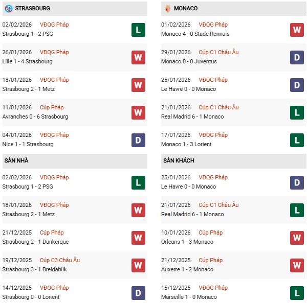 Thống kê phong độ Strasbourg vs AS Monaco: