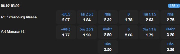 Monaco bất bại 7 trận liên tiếp trước Strasbourg (thắng 6, hòa 1). Dù lịch sử chống lại chủ nhà, nhưng mức kèo chấp nhẹ 0.25 cho thấy đánh giá cao phong độ thực tế của Strasbourg. Với đà tâm lý hưng phấn, đây là cơ hội không thể tốt hơn để Strasbourg phá dớp trước Monaco.