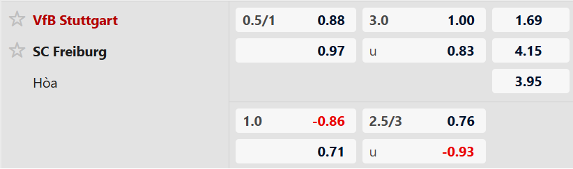 Nhận định kèo châu á Stuttgart vs Freiburg: