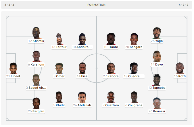Đội hình dự kiến Sudan vs Burkina Faso: