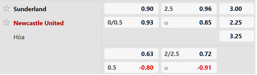 Với số lượng bàn thắng dồi dào từ Sunderland và Newcastle gần đây, trận đấu tới hứa hẹn sẽ là cuộc rượt đuổi tỷ số bàn thắng. Dự đoán sẽ có nhiều hơn 3 pha lập công xuất hiện.