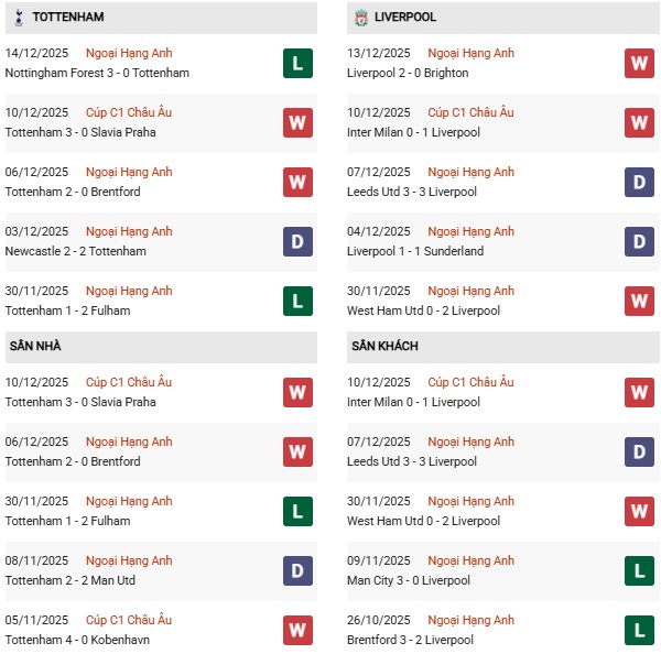 Dẫu vậy, lịch sử đối đầu không đứng về phía Tottenham. Trong 3 lần chạm trán gần nhất tại Ngoại hạng Anh, họ đều không thể đánh bại Liverpool. Đáng chú ý, trận đối đầu gần nhất giữa hai đội hồi tháng 4/2025 chứng kiến Tottenham thua đậm 1-5 ngay tại Anfield, một ký ức chắc chắn vẫn còn ám ảnh các cầu thủ đội chủ nhà.