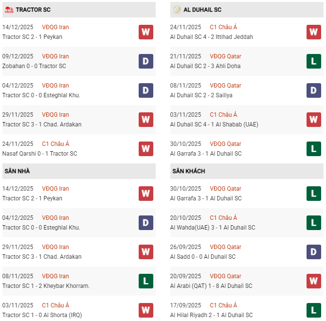 Thống kê phong độ Tractor vs Al Duhail: