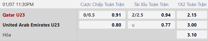 Nhận định kèo U23 Qatar vs U23 UAE: