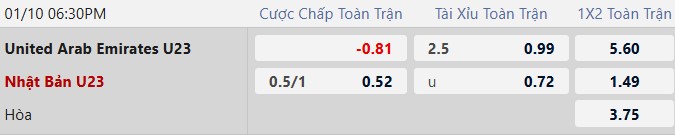 Nhận định kèo châu á U23 UAE vs U23 Nhật Bản: