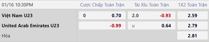 Nhận định kèo U23 Việt Nam vs U23 UAE, 22h30 ngày 16/1, vòng tứ kết U23 Châu Á. Phong độ đang lên cao nhiều khả năng giúp thầy trò HLV Kim Sang Sik phá dớp để thua trước đó với U23 UAE.