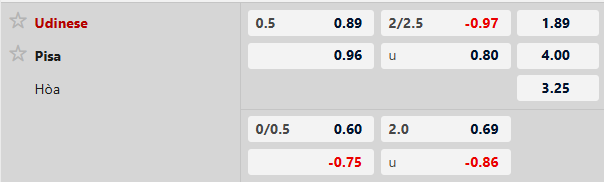 - Lần gần nhất gặp nhau, Udinese đã đánh bại Pisa.
