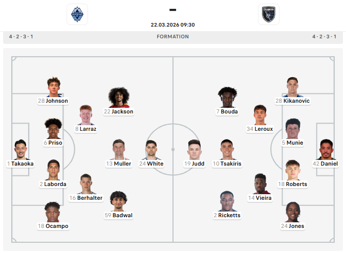Đội hình dự kiến Vancouver Whitecaps vs San Jose Earthquakes: