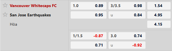 Nhận định kèo châu á Vancouver Whitecaps vs San Jose Earthquakes: