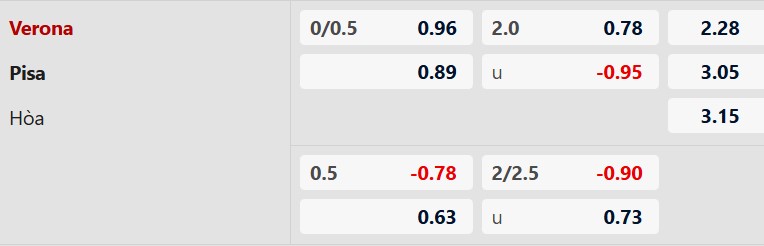 Cửa Xỉu: Cả hai đội đều sở hữu hàng công thuộc hàng yếu nhất giải (Verona ghi 18 bàn, Pisa ghi 19 bàn sau 23 trận). Lần chạm trán gần nhất vào tháng 10/2025 cũng kết thúc với tỷ số 0-0. Tính chất quan trọng của cuộc đua trụ hạng thường khiến các đội nhập cuộc thận trọng.