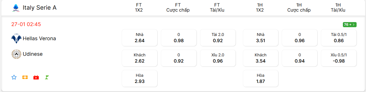 Nhận định kèo Verona vs Udinese, 02h45 ngày 27/01 hôm nay