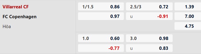 Villarreal thắng 2/3 trận vừa qua theo tỷ số châu Á. Phía bên kia, Copenhagen thua 6/8 trận gần đây.