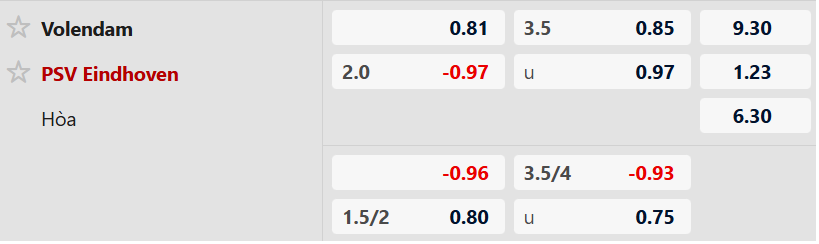 Dù Volendam chơi khá lỳ lợm trên sân nhà, nhưng trước một PSV đang vào phom và vượt trội về mọi mặt từ chất lượng đội hình đến đẳng cấp, kịch bản về một chiến thắng cách biệt cho đội khách là điều đã được dự báo trước. Mức kèo chấp -2 vẫn nằm trong khả năng chinh phục của Joey Veerman và các đồng đội.