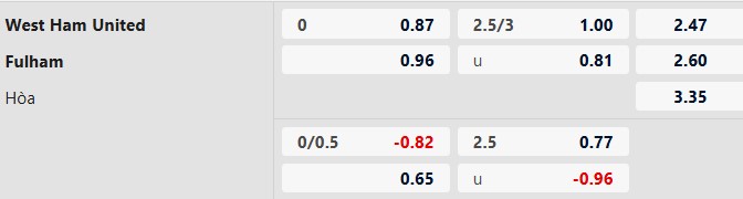 Nhận định kèo tài xỉu West Ham vs Fulham: