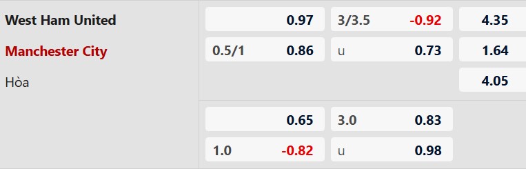 Nhận định kèo West Ham vs Man City: