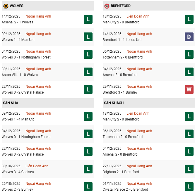 Phía bên kia chiến tuyến, Brentford của HLV Keith Andrews hiện đứng thứ 15 với 19 điểm. Dù phong độ sân khách không quá ấn tượng (chỉ thắng 1/8 trận), nhưng Brentford lại sở hữu hàng công khá sắc bén với 21 bàn thắng từ đầu mùa. Trận hòa 1-1 trước Leeds gần đây cho thấy sự kiên cường của “Bầy ong”. Trước một đối thủ đang mất phương hướng như Wolverhampton, Brentford hoàn toàn có khả năng cải thiện thành tích sân khách của mình để ra về với 3 điểm trọn vẹn.