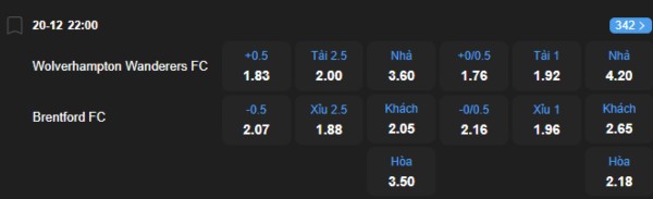 Kèo tổng số bàn thắng trận này là 2 1/2. Điểm yếu chung của cả hai đội trong mùa giải này chính là khâu phòng ngự. Trong khi Wolverhampton đã để thủng lưới 35 bàn thì Brentford cũng không kém cạnh với 24 lần phải vào lưới nhặt bóng. Tuy nhiên, hàng công của Brentford vẫn duy trì hiệu suất ghi bàn tốt. Với việc cả hai đội đều khao khát điểm số để thoát khỏi nhóm nguy hiểm, trận đấu hứa hẹn sẽ diễn ra cởi mở và có nhiều bàn thắng.