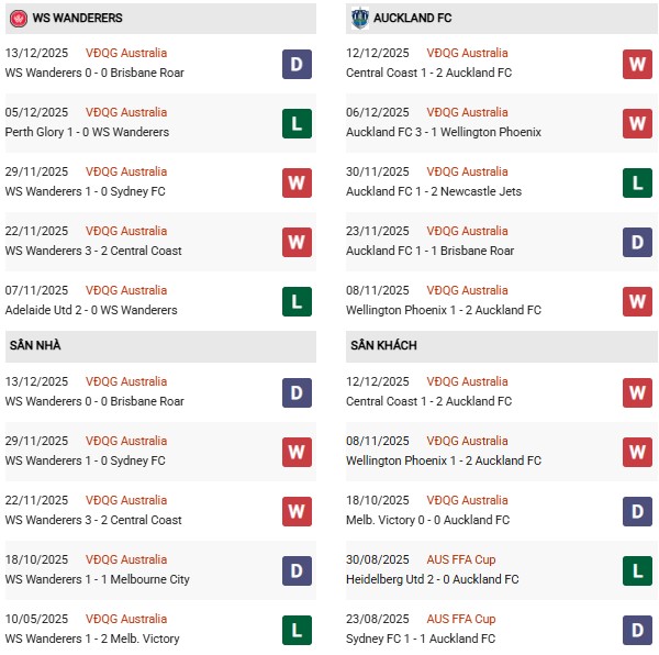 Thống kê phong độ WS Wanderers vs Auckland FC: