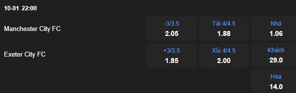 Nhận định kèo châu Á Man City vs Exeter: