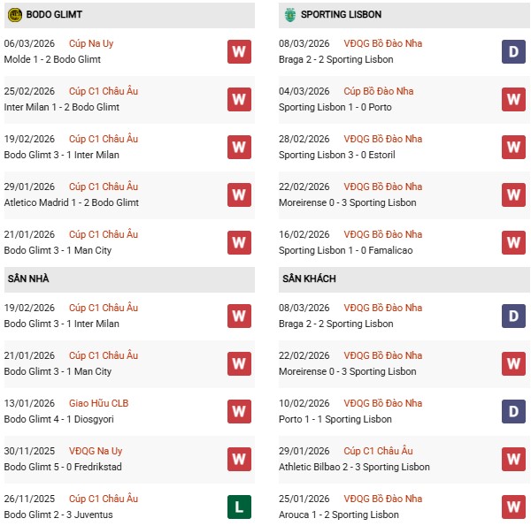 Thống kê phong độ Bodo Glimt vs Sporting: