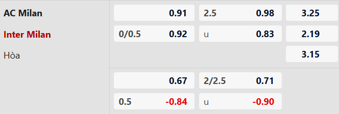 Nhận định kèo châu á AC Milan vs Inter Milan: