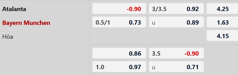 Nhận định kèo châu Á Atalanta vs Bayern Munich: