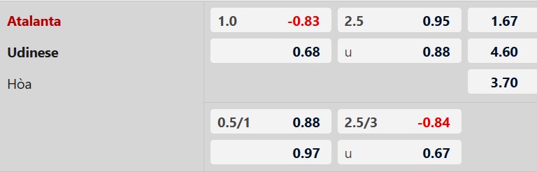 Nhận định kèo tài xỉu Atalanta vs Udinese: