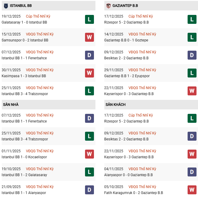 Thống kê đối đầu Basaksehir vs Gaziantep: